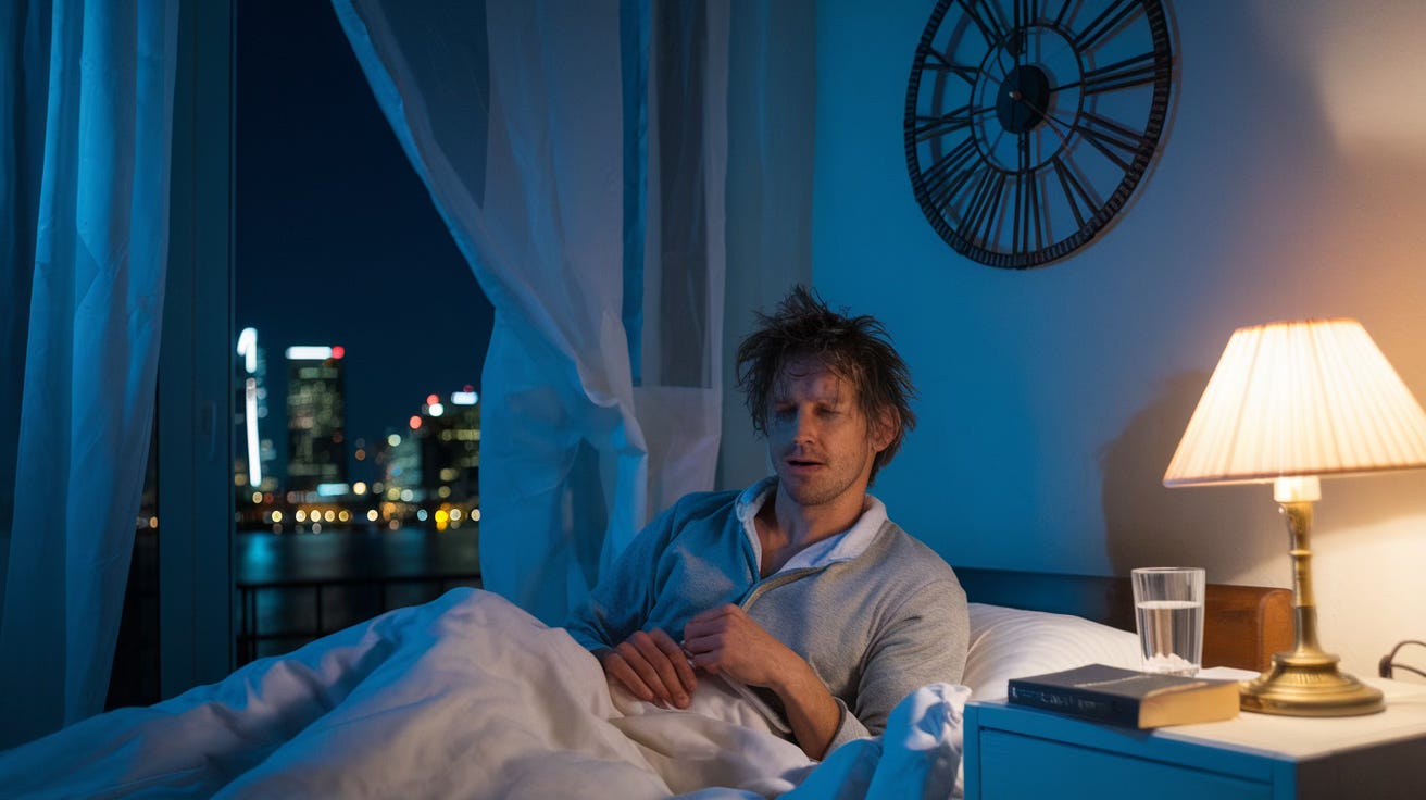 Here’s the thing they don’t tell you in those pristine medical journals: insomnia isn’t just not sleeping. Oh, no. It’s being trapped in a consciousness that refuses to shut up. It’s like having a radio in your head permanently stuck on the “All Anxiety, All the Time” station. You lie there, staring at the ceiling, wondering if ceiling fans have existential crises. Murray, my shadowy friend by the dresser, assures me they do. He’s really into Feng Shui, by the way.