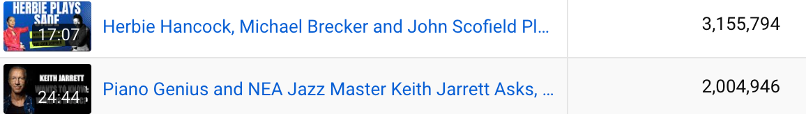 I have posted over 2500 videos on YouTube in the past eighteen years. Most are under ten minutes, either performances, interviews, workshops, just about anything to do with jazz. No recipes though or makeup tips. Nothing about style or ways to get rich. I’m hardly an influencer. Nevertheless, my videos have fifty million views.
