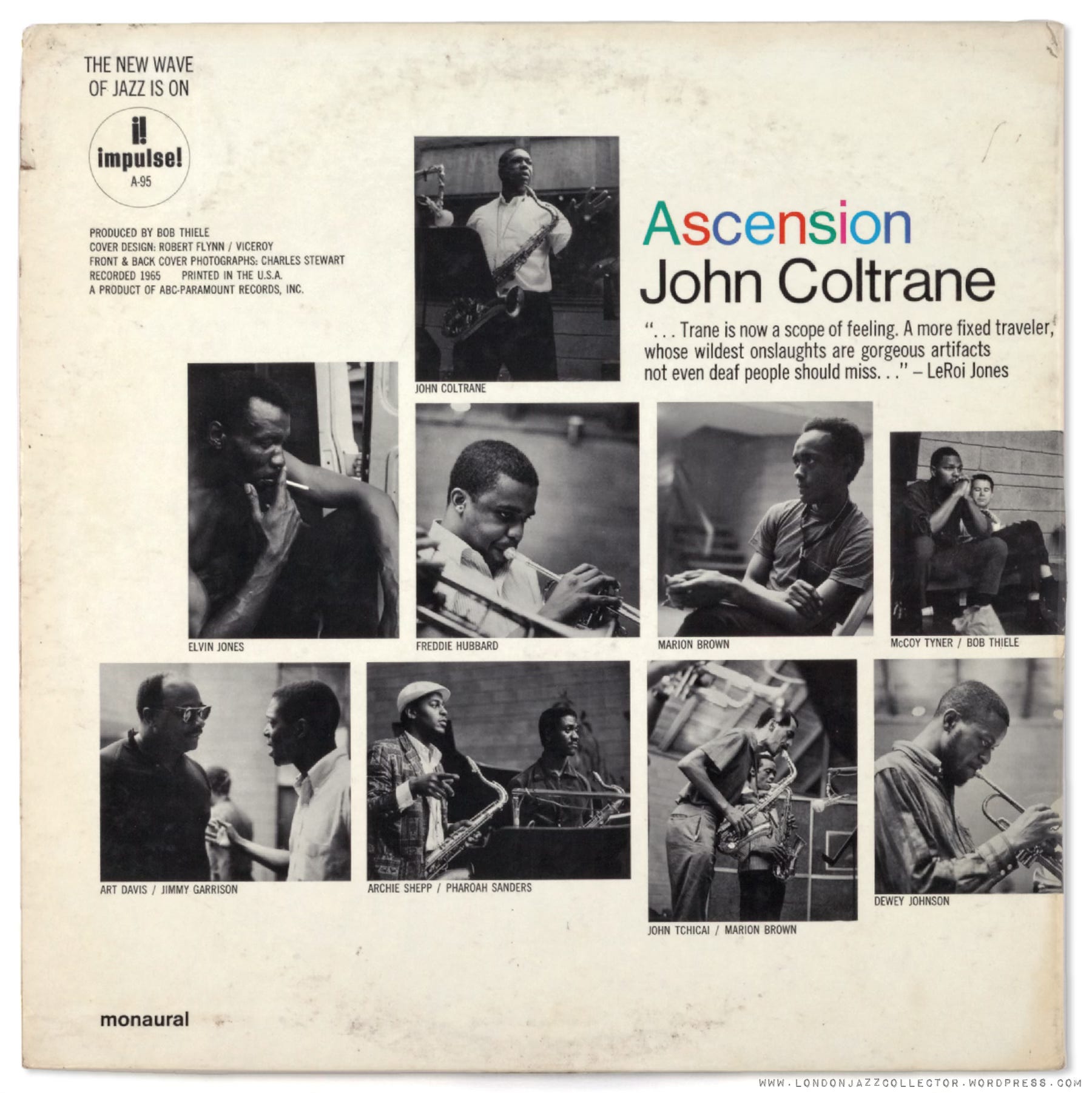 Very good breakdown of a work that sort of defies it. At lunch one day with Bob Thiele, I asked him what it was like to be in the studio when Ascension was recorded. His reply? “Very loud.”