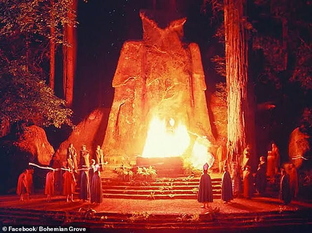 Somewhere in the redwood-soaked belly of Northern California, beyond the granola trails and Bigfoot bumper stickers, there's a forest where the world's most powerful men strip naked, don robes, light fires under a giant stone owl, and pretend the world isn't burning.