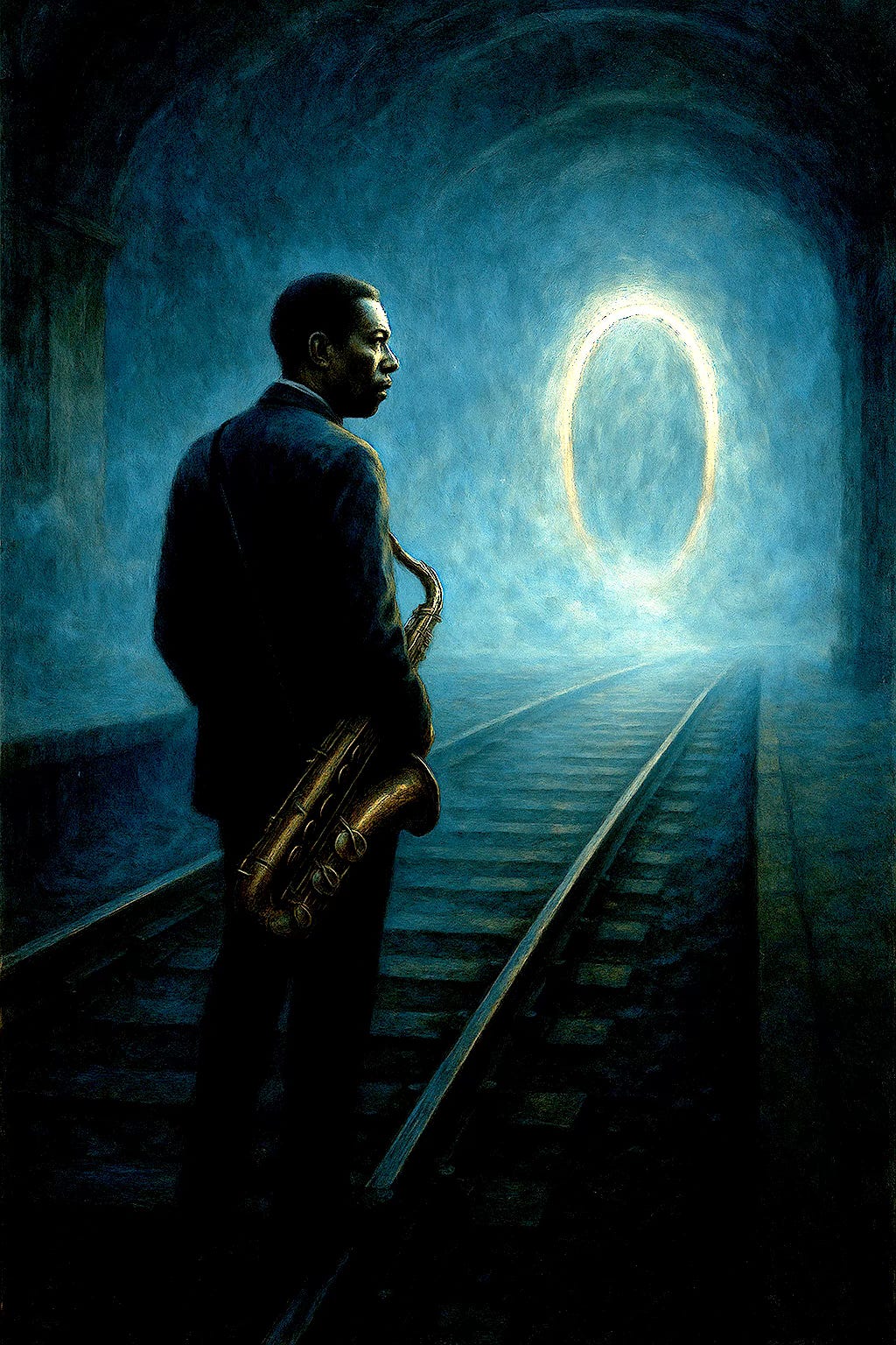 Since his final breath, John Coltrane had traveled through tunnels of memory, silence, and light—chasing a tone only the soul could hear.