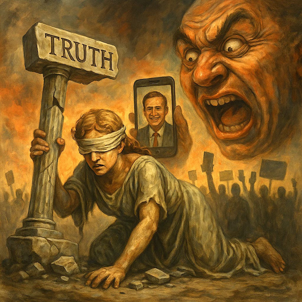 Once upon a time, truth was a sturdy beast. The kind of thing you could lean on after three martinis and a bad night’s sleep. Then came the internet, and now the beast is loose in the casino, chain-smoking menthols, betting your rent money, and mumbling about “vibes-based epistemology.”